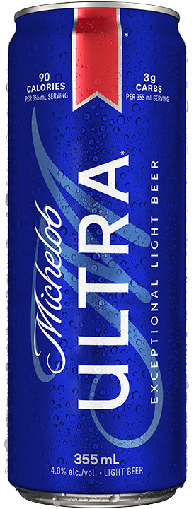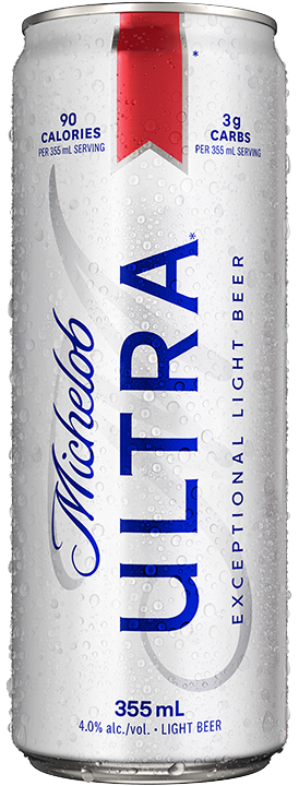 Michelob ULTRA is a Superior Light Beer brewed for those who know how to balance a social and active lifestyle. Containing 90 calories and 3g carbs per can (355mL), Michelob ULTRA is a light lager brewed with a unique balance of hops and grains, producing a light citrus aroma and a crisp, refreshing finish.